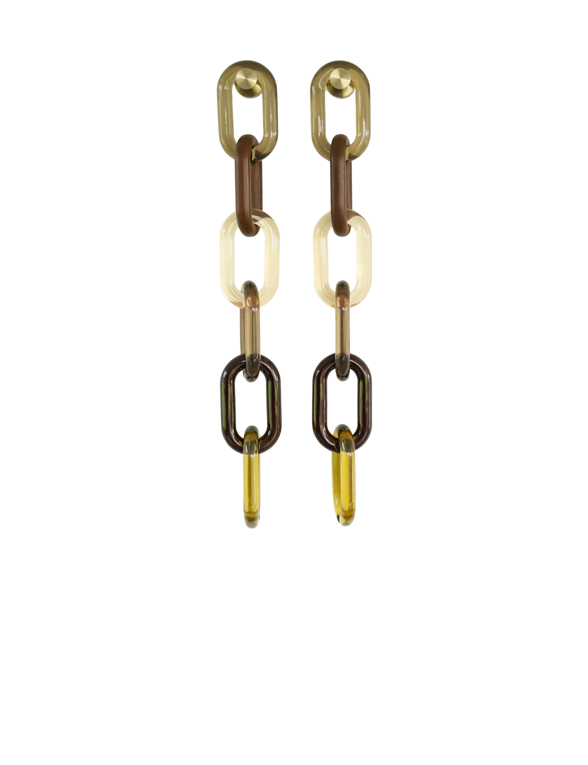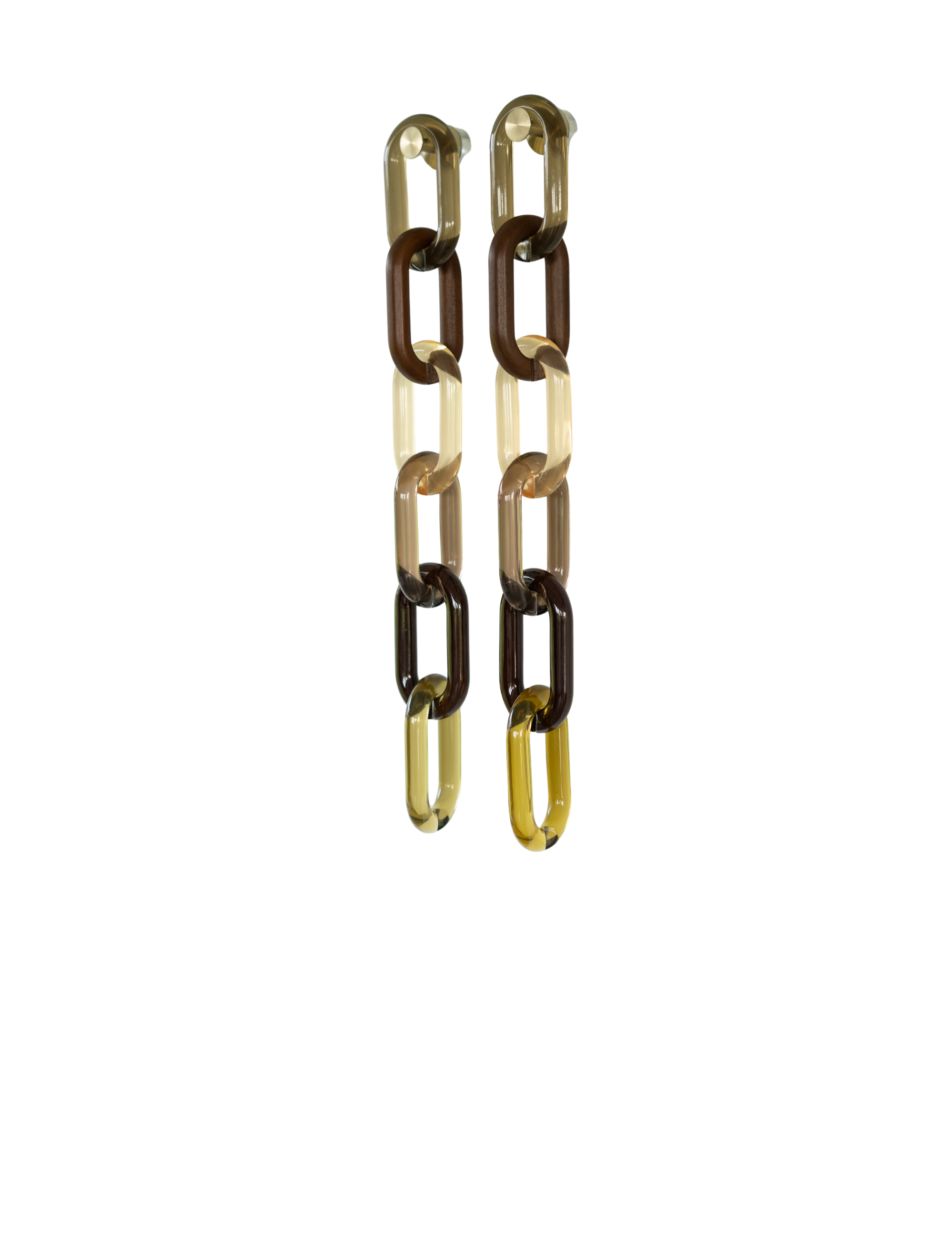 Golden Root is grounded in warmth and light. The chain’s deep brown, honey yellow, and transparent tones echo the textures of sunlit wood and earth after rain. It’s a study in balance between shine and shadow, solidity and flow.