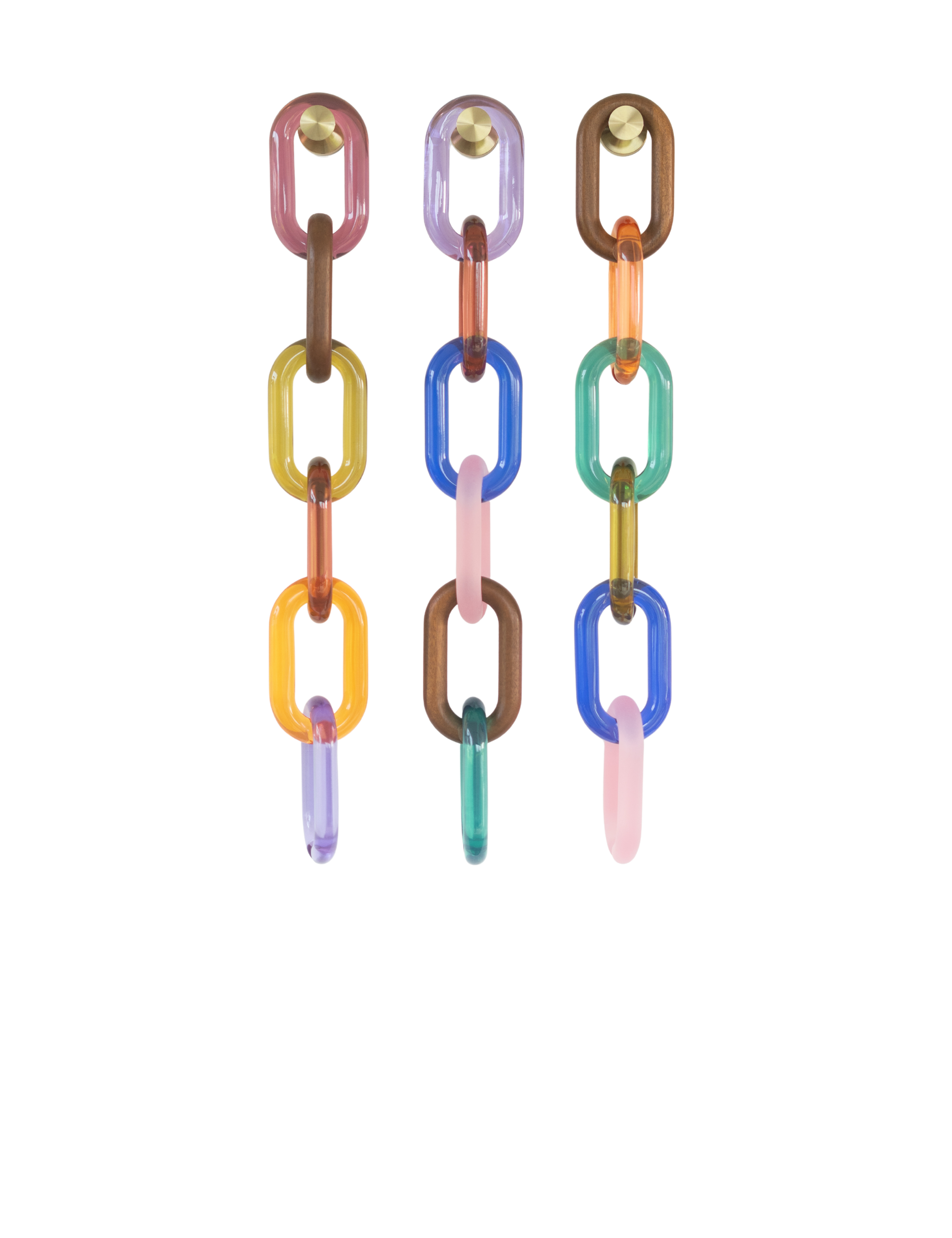 18 links: 3 rows of 6 in mixed tones of green, blue, purple, pink and orange.
