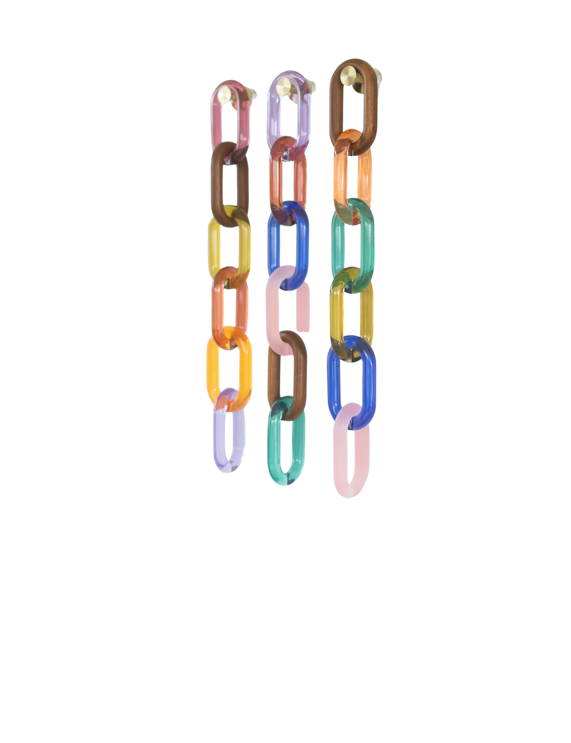 Groovy Splash is a colorful, funky chain sculpture that adds a playful twist to any space. Handcrafted from vibrant acrylic links that flow together like a retro rainbow wave. Perfect as a wall piece or eye-catching accent a cheerful splash of groove for your interior.