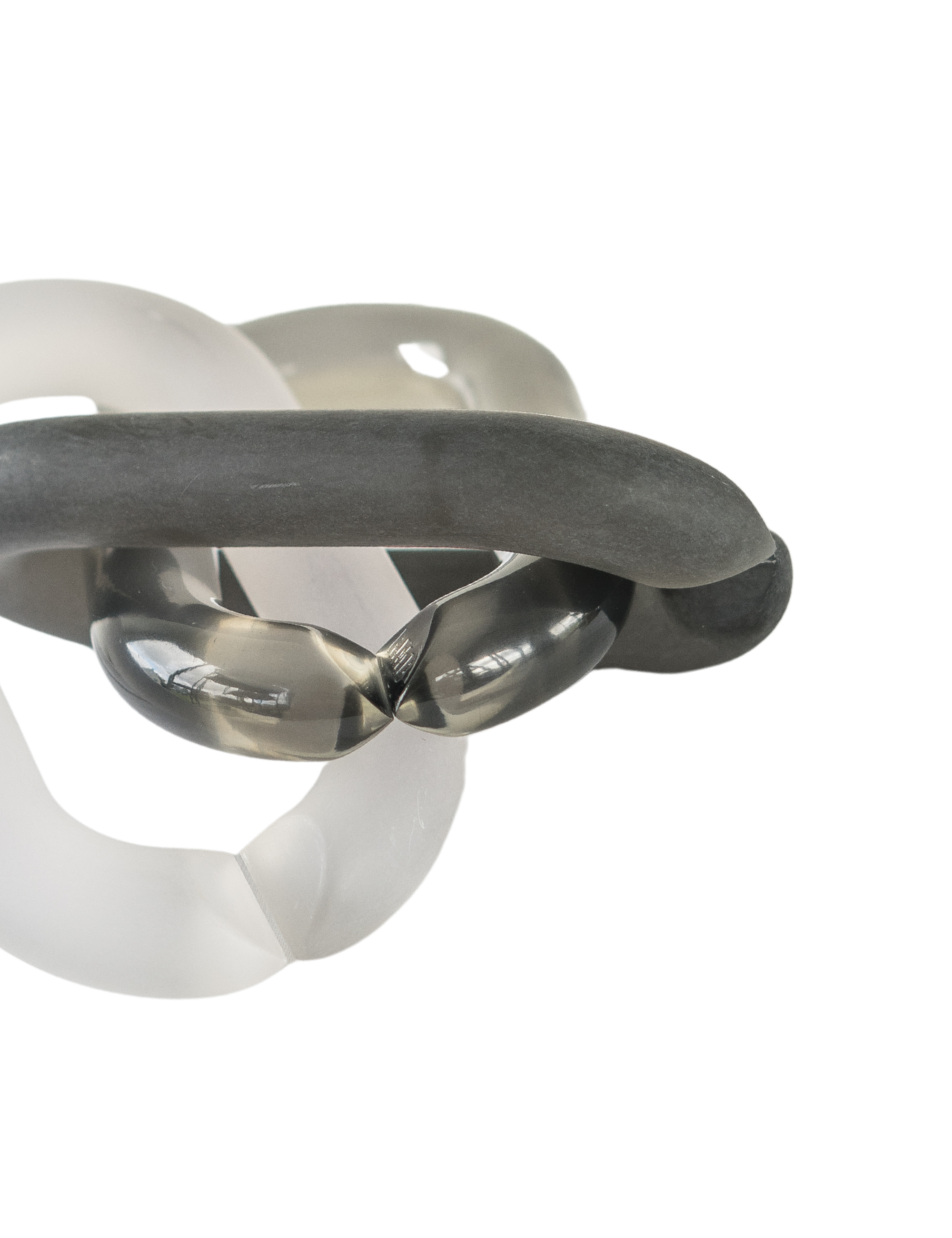 KNOT #1 is a small table sculpture made of glossy raisin acrylic. It's a colorful interplay of shape, light and reflection. Style them together as a statement piece or scatter them around as funky accents in your interior.