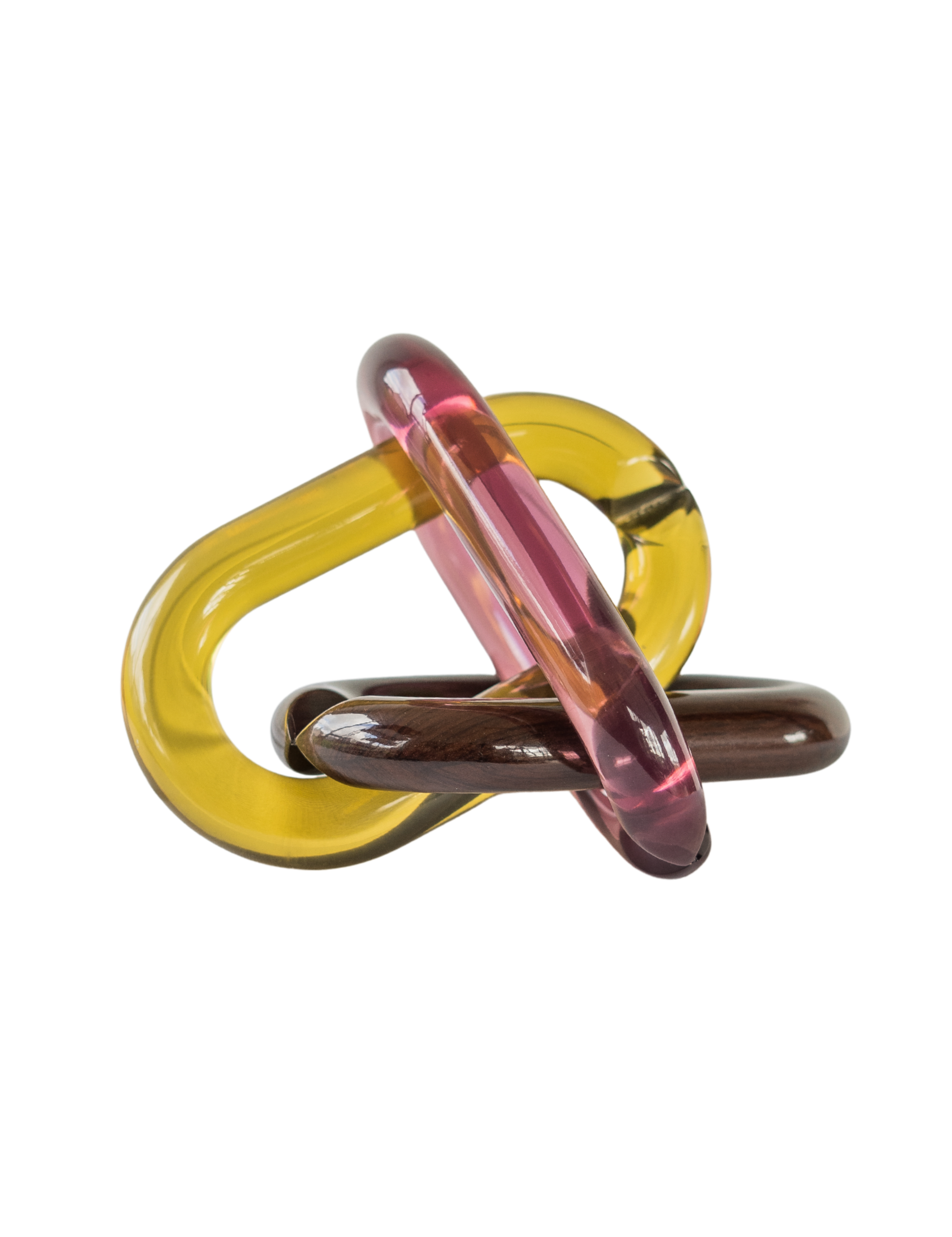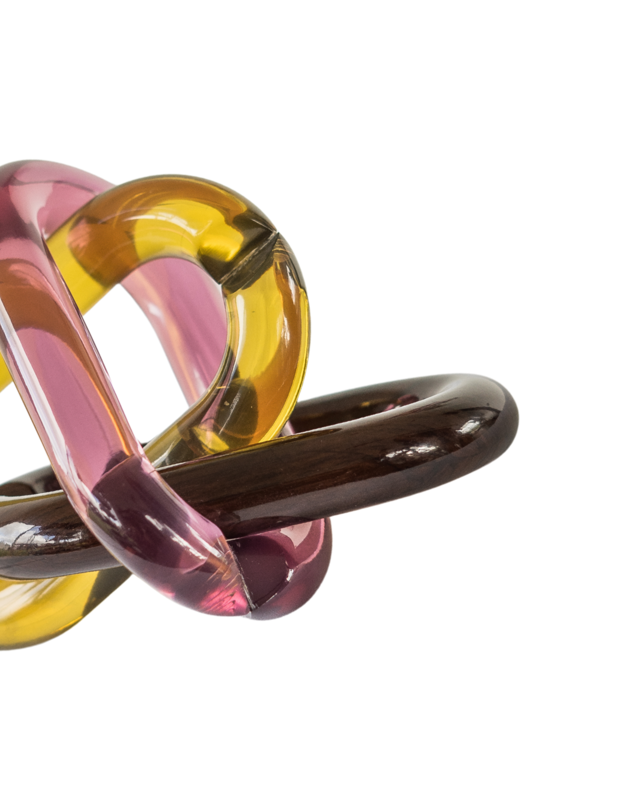 KNOT #1 is a small table sculpture made of glossy raisin acrylic. It's a colorful interplay of shape, light and reflection. Style them together as a statement piece or scatter them around as funky accents in your interior.
