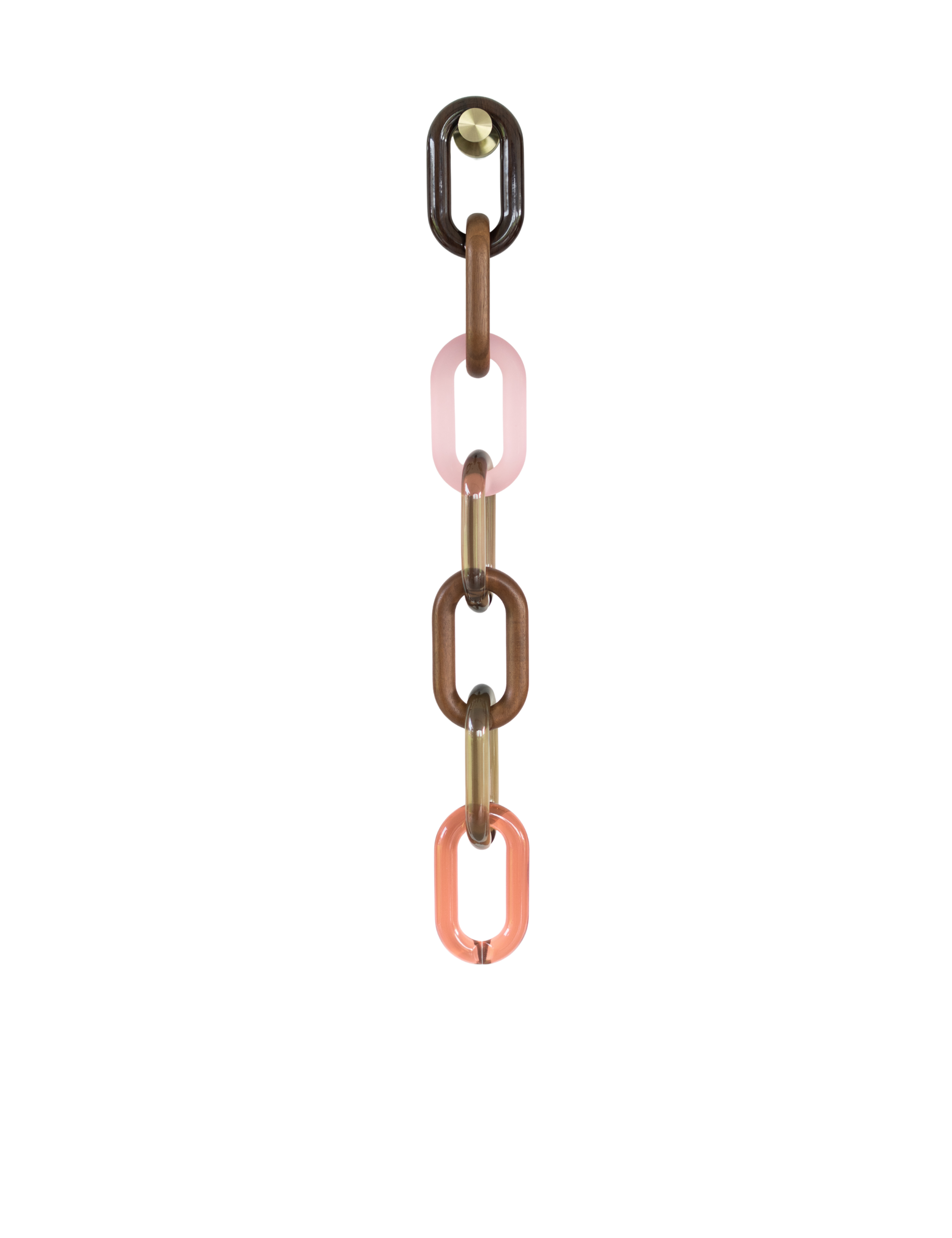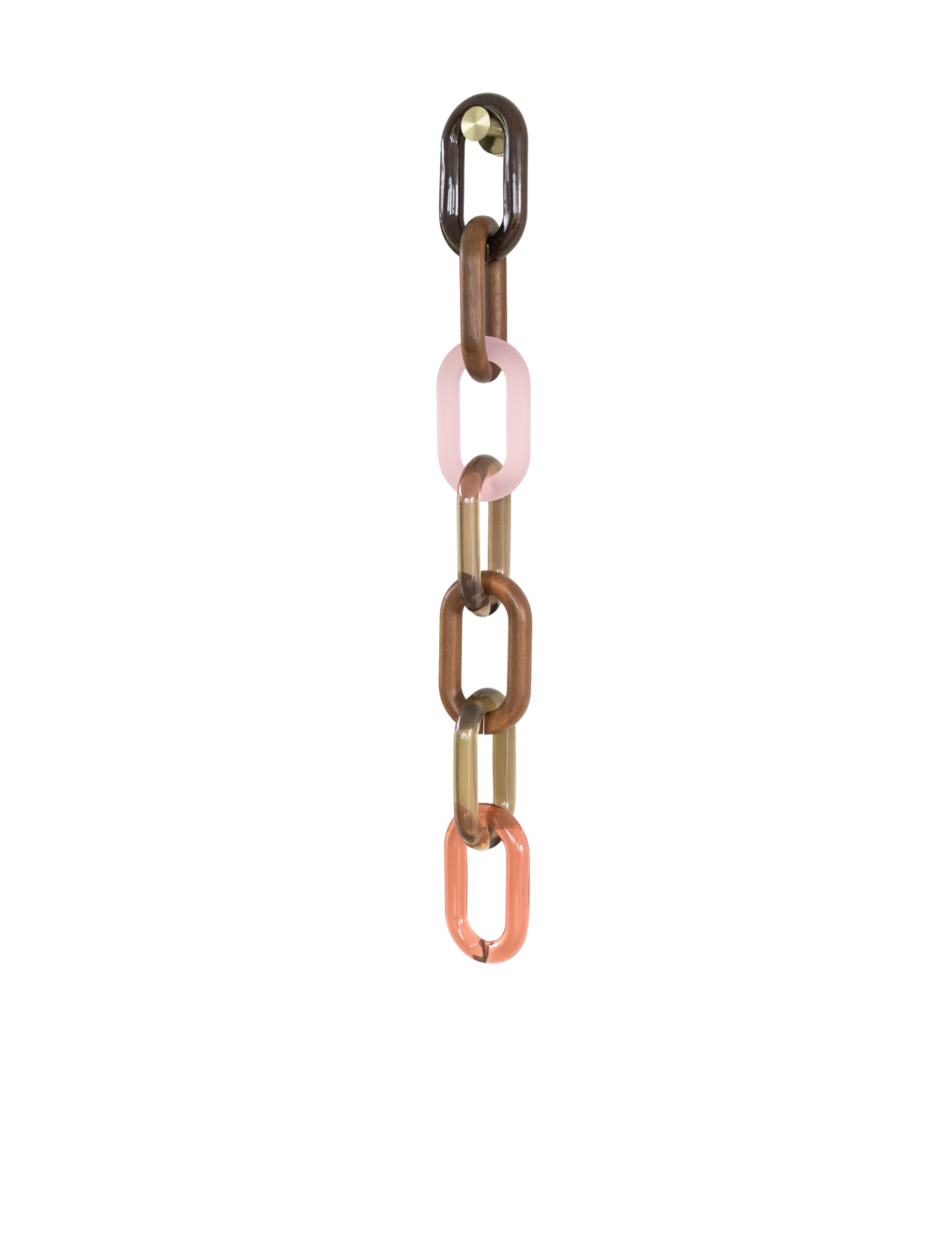 8 resin links: 1 row of 8 in soft pink, caramel, and deep brown tones. Rosewood Rhythm blends warmth and elegance, capturing the quiet glow of wood and rose. A gentle balance within the Ring My Bell spectrum.