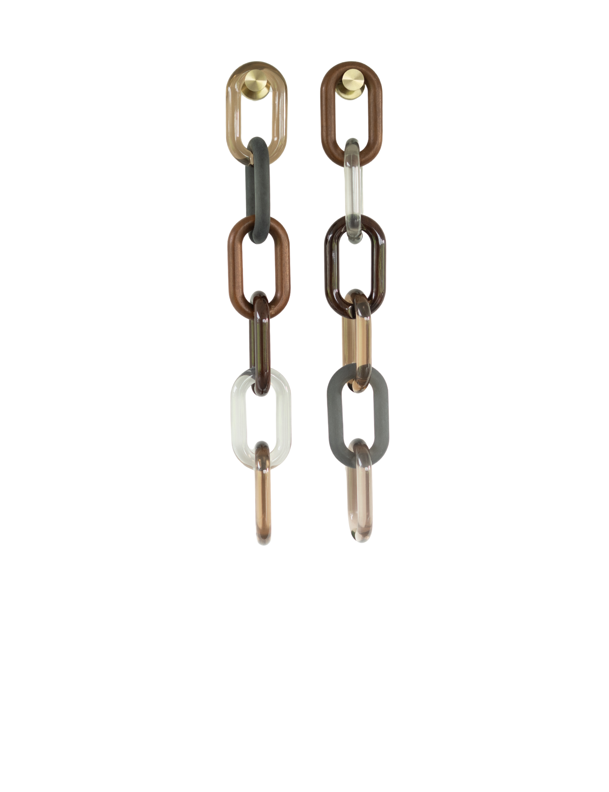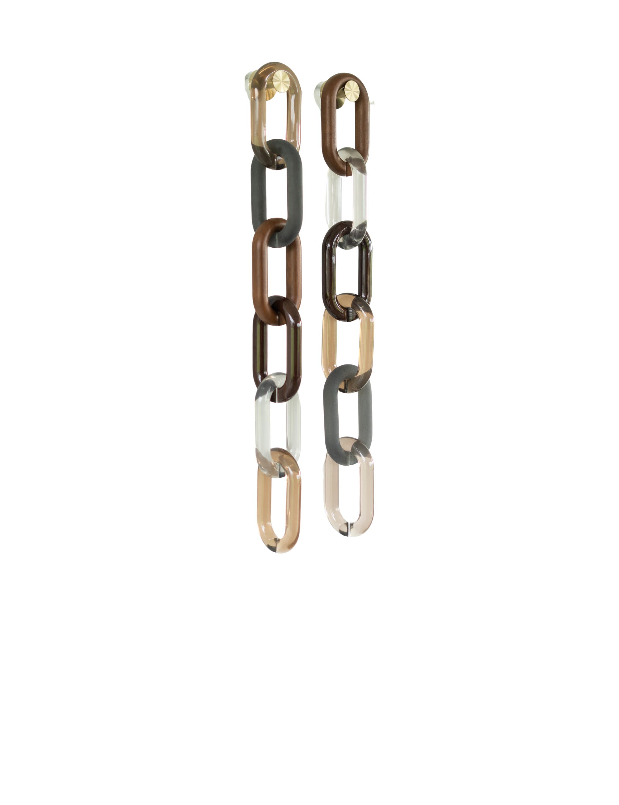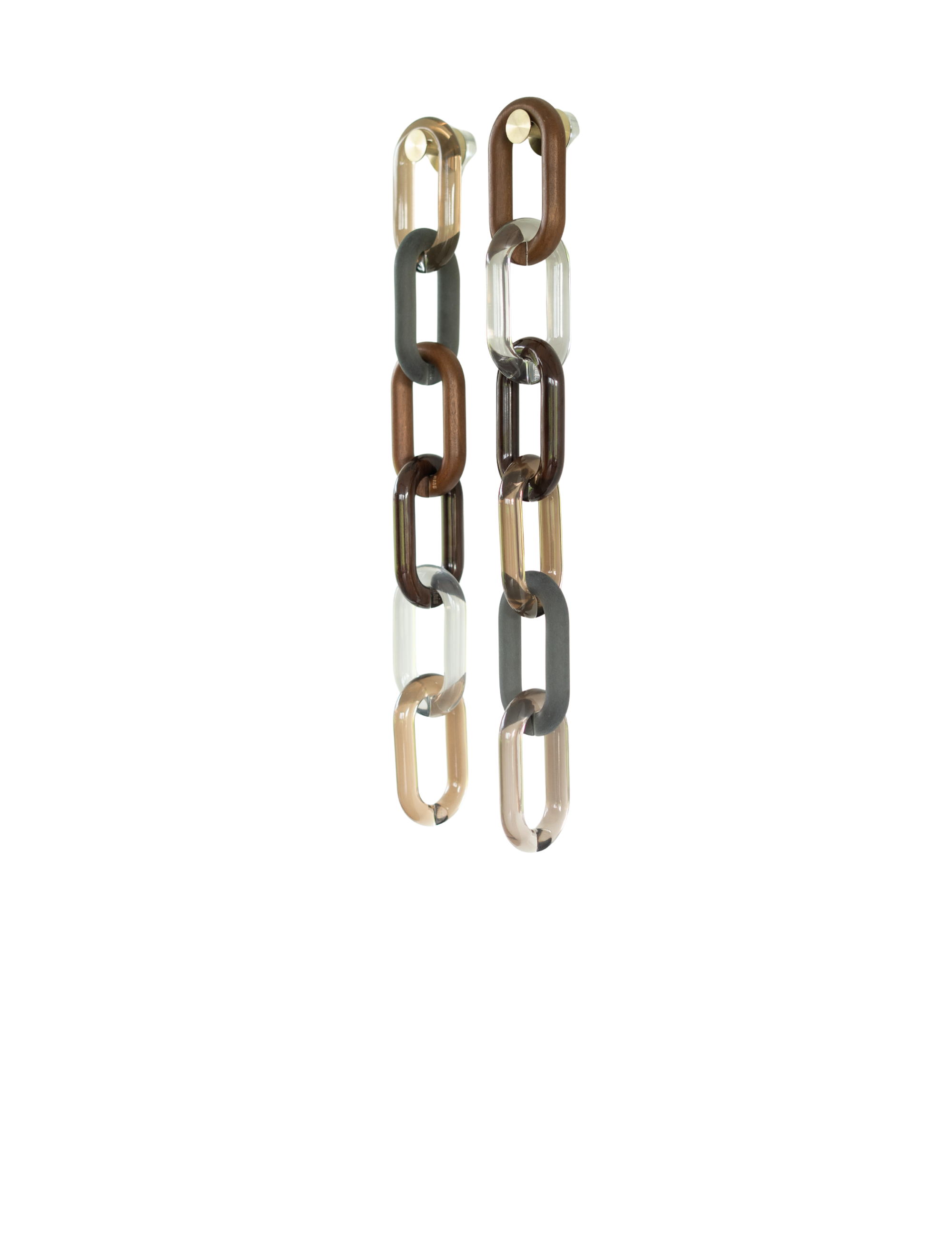 12 resin links: 2 rows of 6 in shades of wood, smoke, and sand.